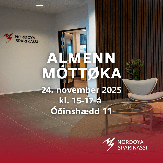 Almenn móttøka verður mánadagin 24. november 2025 kl. 15-17 í stásiligu hølunum á Óðinshædd 11, har høvi verður at vitja øll, sum hava leigað seg inn í bygningin.